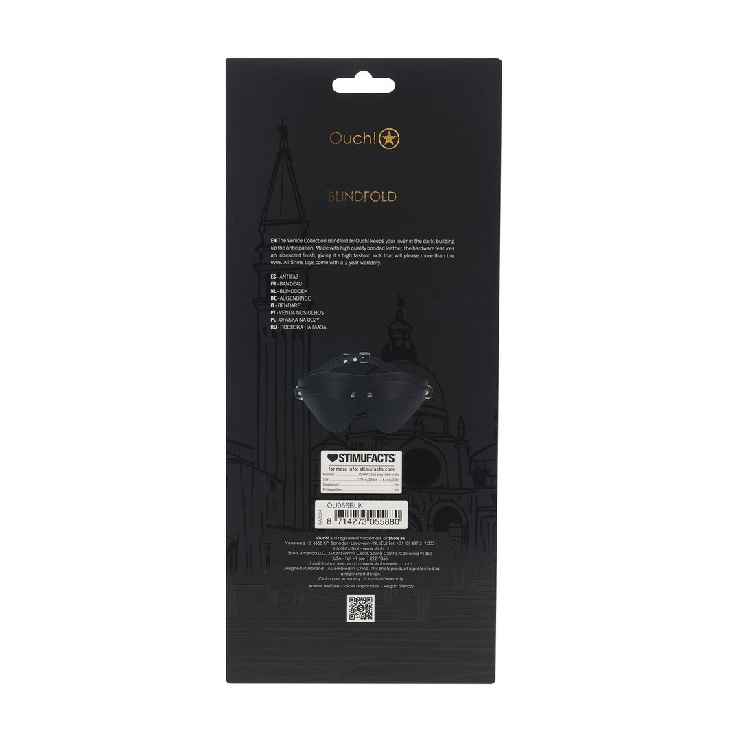 El antifaz Venice Collection de Ouch! mantiene a tu amante en la oscuridad, aumentando la expectación. Fabricado en cuero regenerado, cuenta con un acabado iridiscente en su hardware, dándole un aspecto de alta costura que es seguro para complacer más que el ojo. Todos los juguetes Shots tienen un año de garantía.