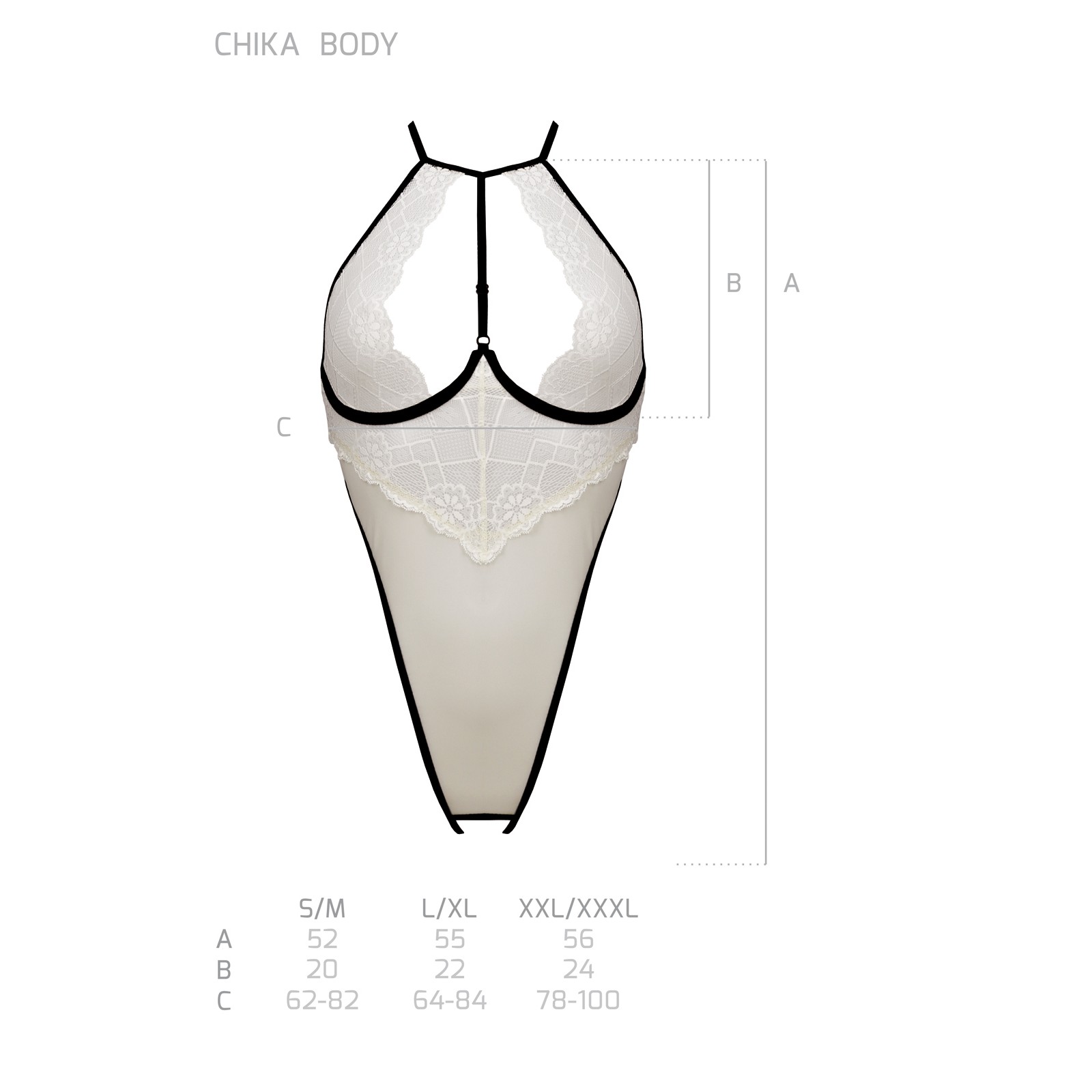 Este body sofisticado combina la elegancia del color crema con detalles en blanco, creando un contraste seductor y moderno.
