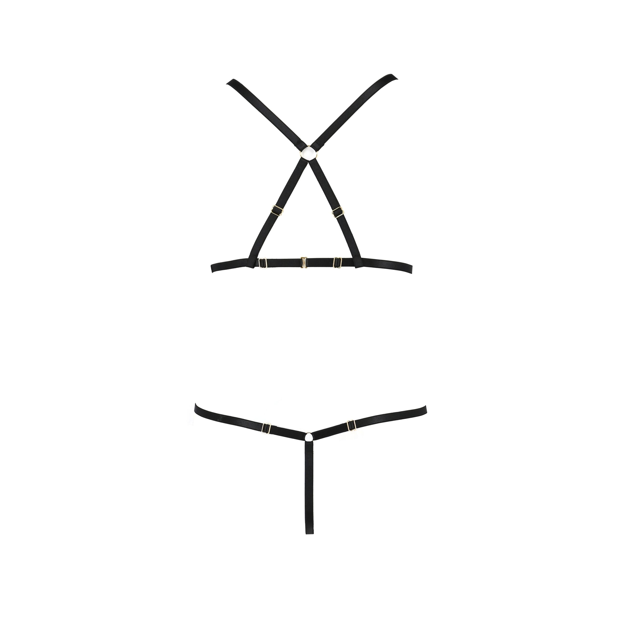 El sujetador abierto está confeccionado con tirantes finos y delicados que rodean el pecho y se ajustan perfectamente gracias a los botones de ajuste.