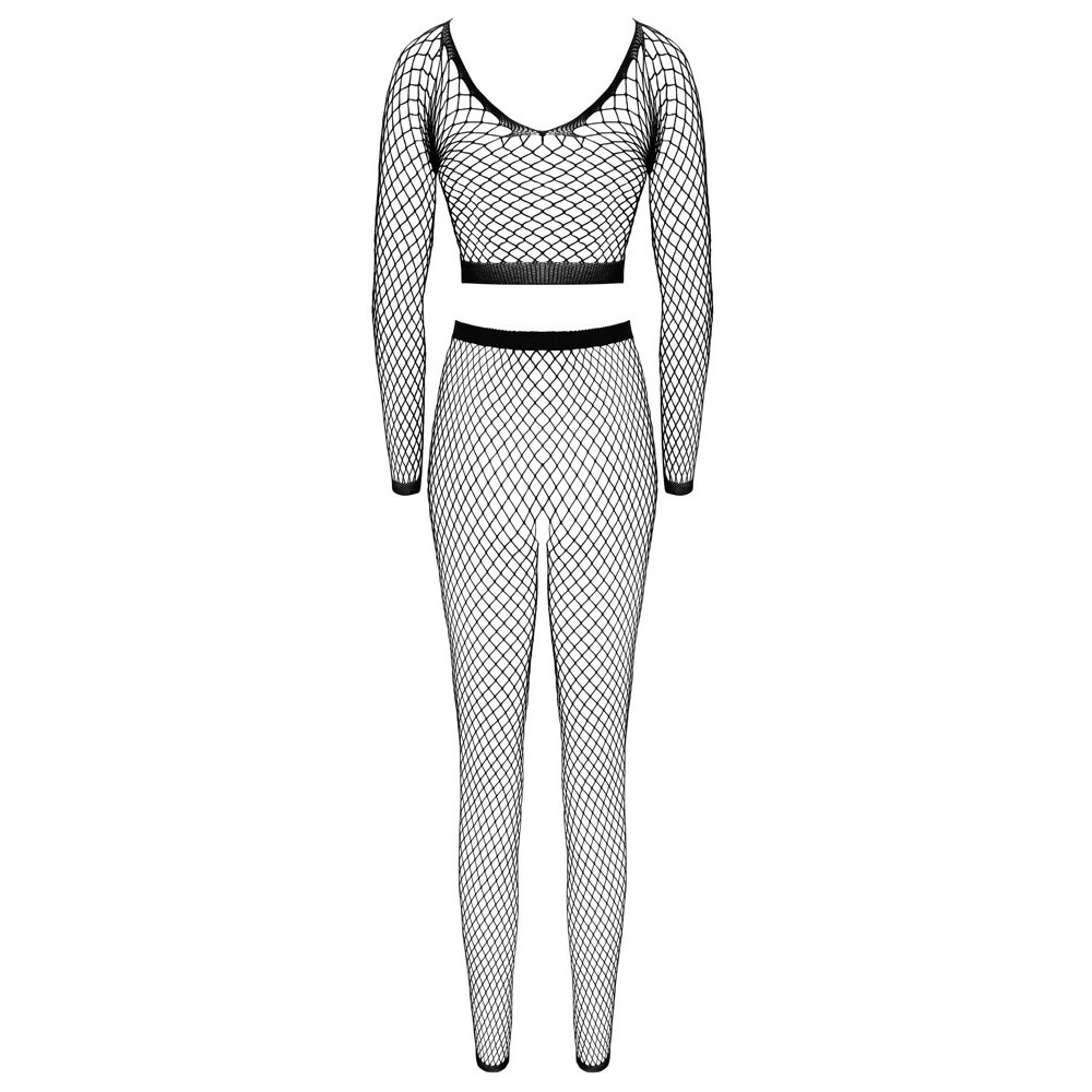 El excitante conjunto de red negro de dos piezas de Cottelli FANTASY contiene un crop top de manga larga y unos leggings sin entrepierna. La red suave y elástica se adhiere al cuerpo y se ajusta como una segunda piel. Todo sin costuras con bordes suaves para un ajuste muy cómodo. Los leggings no tienen entrepierna.