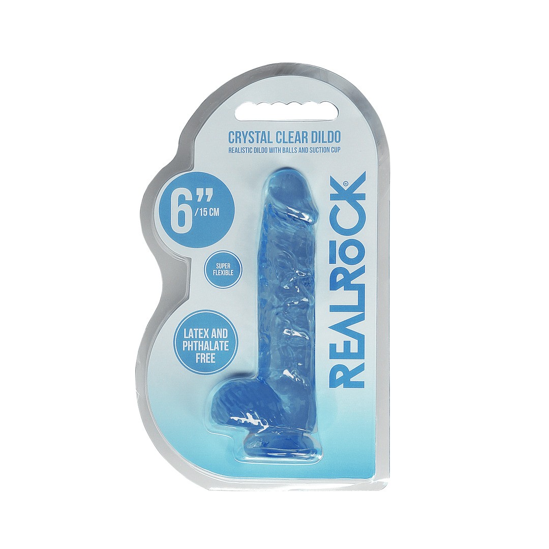 DILDO REALISTA CON TESTICULOS CRYSTAL CLEAR 6 /15 CM AZUL REALROCK