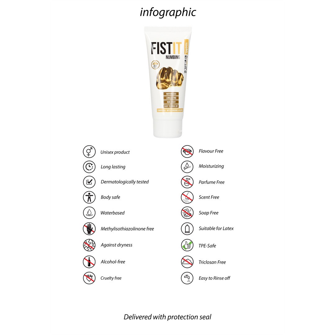 Si quieres llevar tu juego con juguetes sexuales y el sexo anal al siguiente nivel, entonces el lubricante para fisting FIST IT NUMBING es perfecto para el trabajo. Dermatológicamente probado y compatible con preservativos de látex.