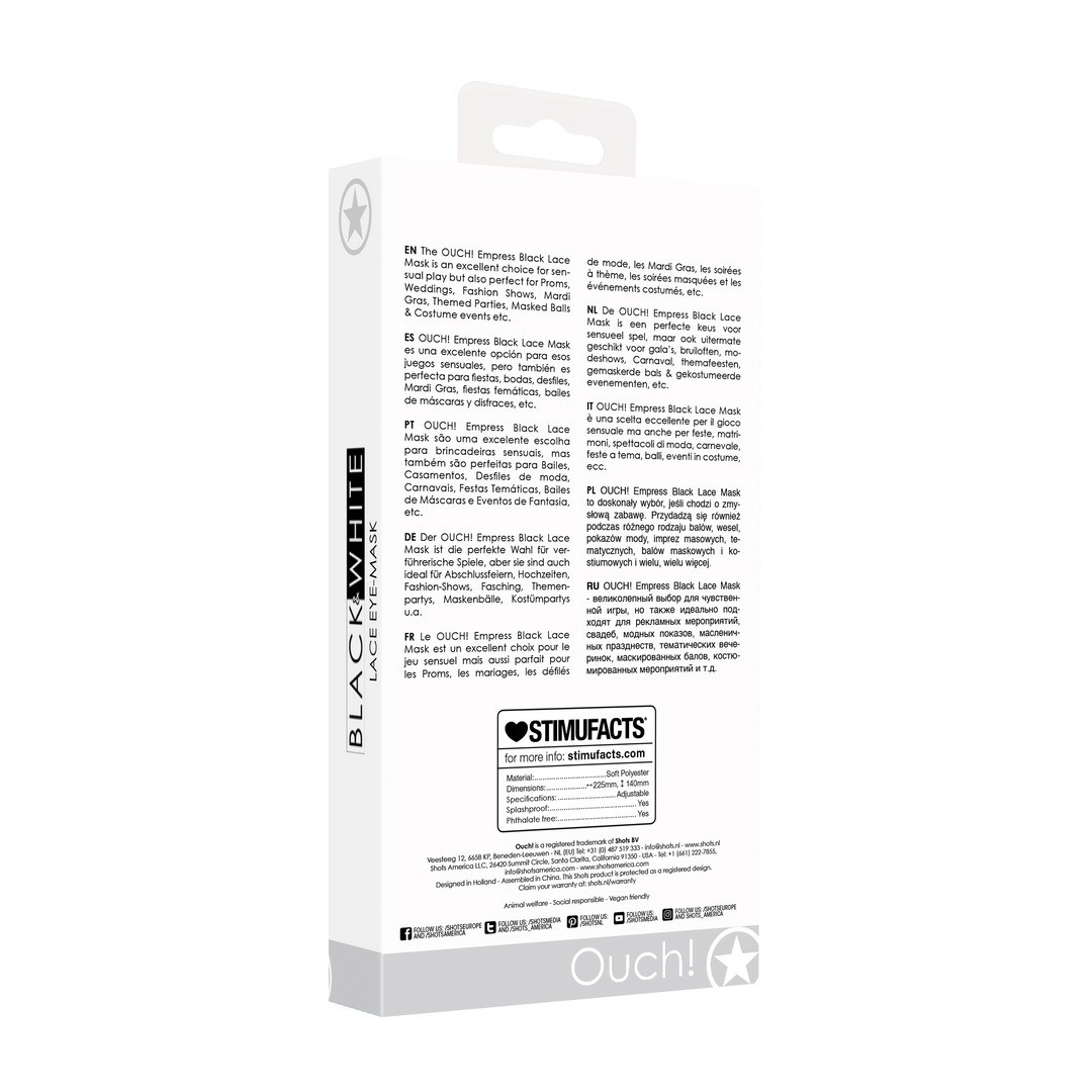 El antifaz OUCH! Empress Black Lace Mask es una excelente elección para juegos sensuales, pero también es perfecta para fiestas de graduación, bodas, desfiles de moda, Mardi Gras, fiestas temáticas, bailes de máscaras, eventos de disfraces, etc.