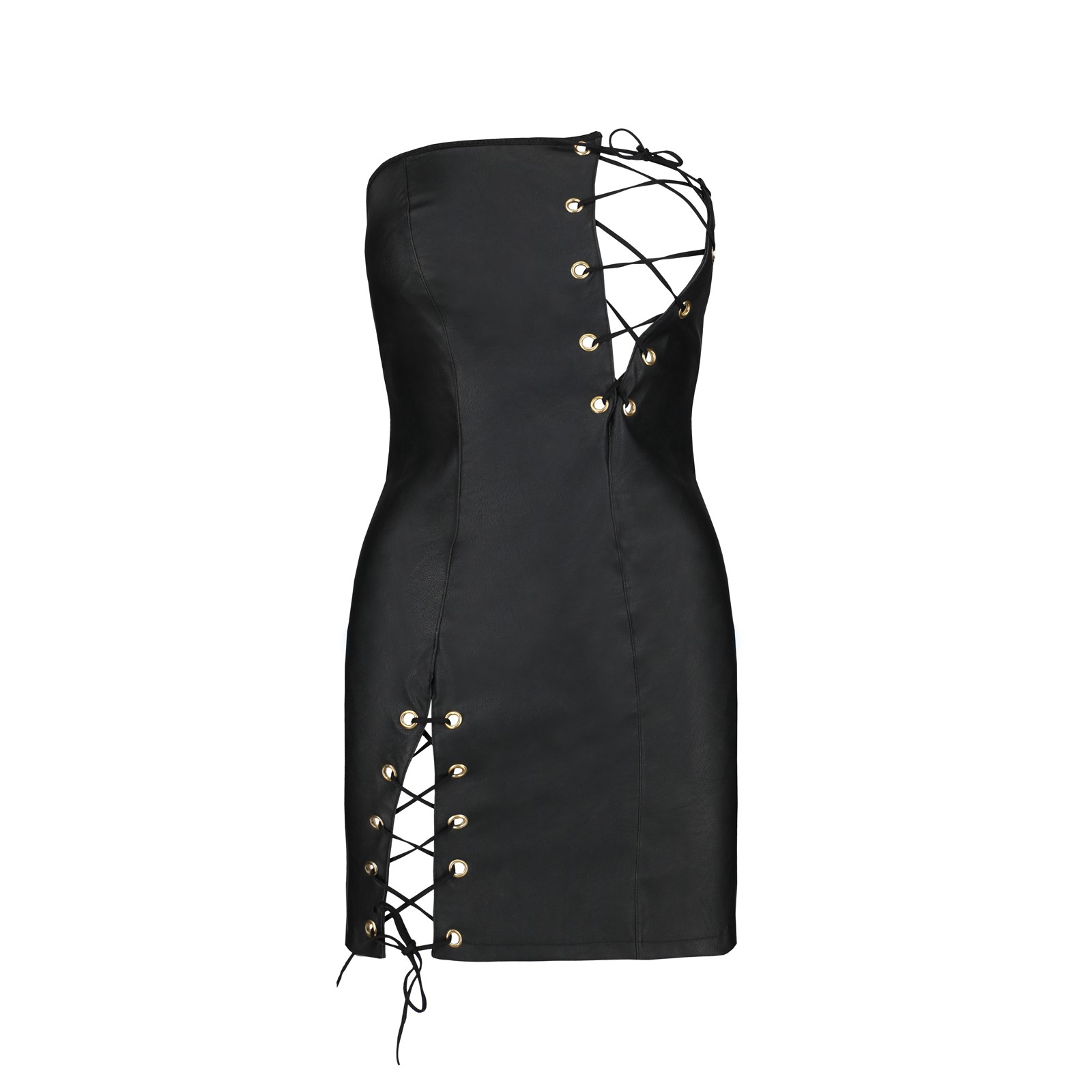 Confeccionado en piel sintética de alta calidad, presenta un diseño entallado que realza las curvas naturales del cuerpo. Los delicados cordones delanteros añaden un toque seductor y permiten un ajuste personalizado, garantizando comodidad y estilo.