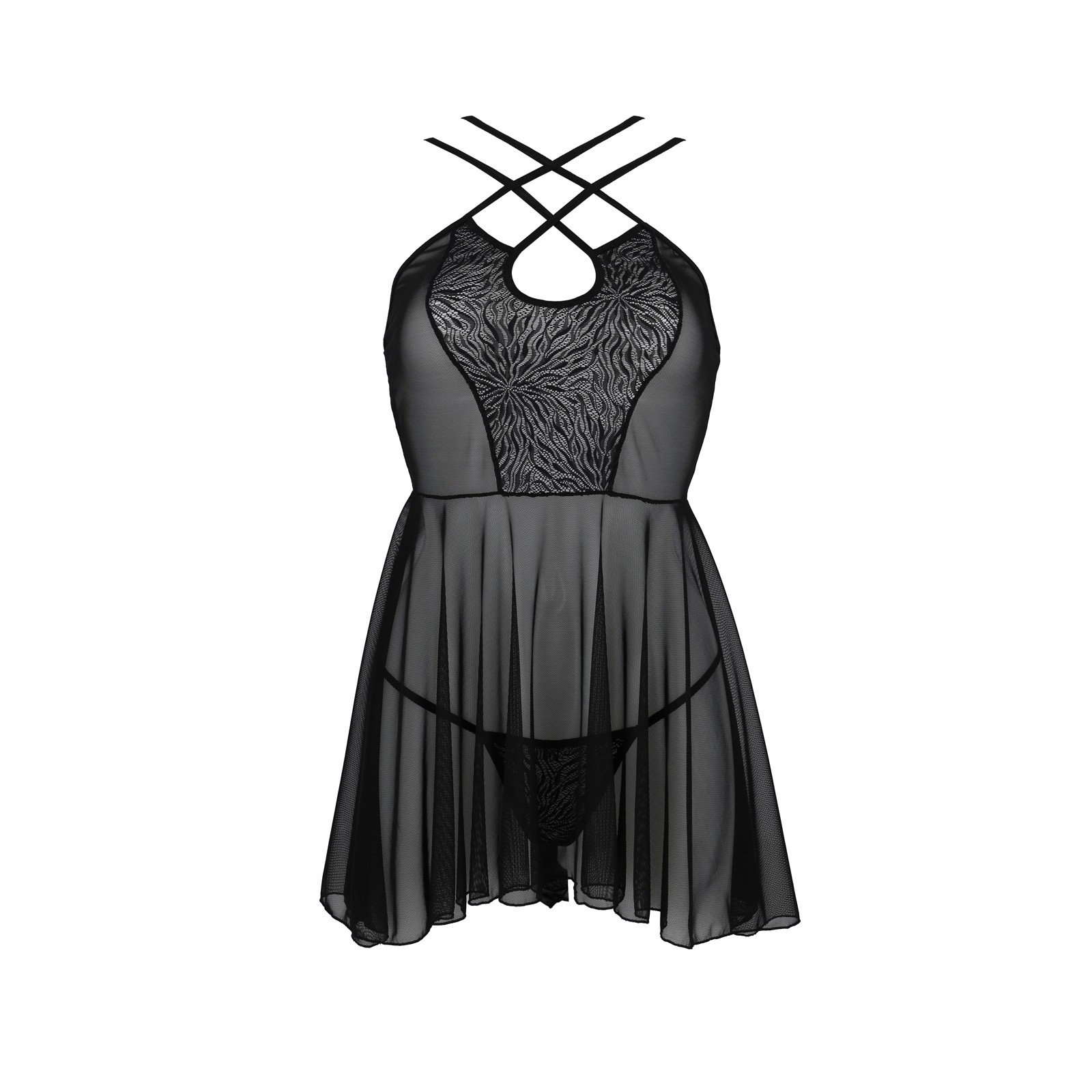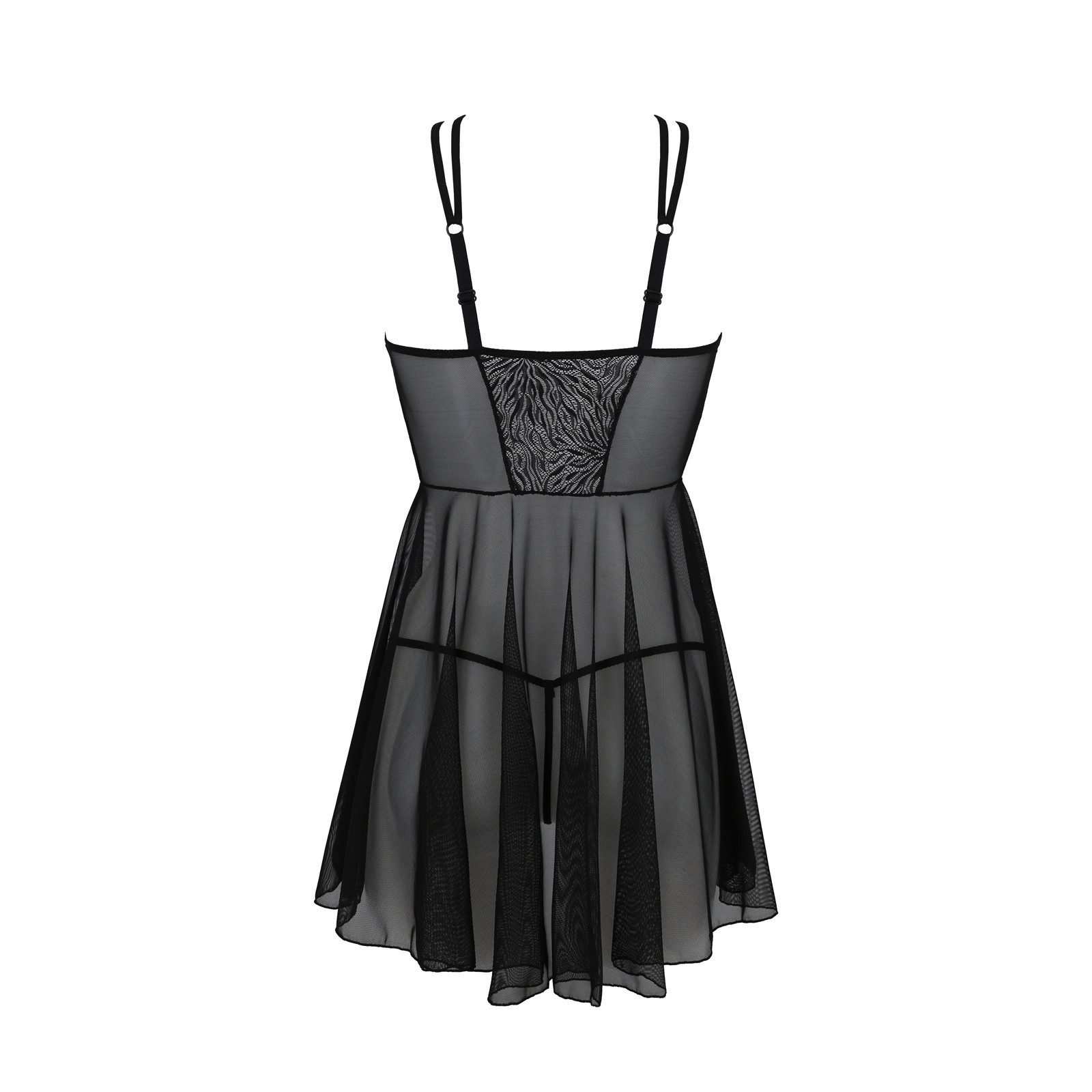 Los tirantes ajustables garantizan una mayor comodidad y el tejido no es alergénico, no pierde color y mantiene su calidad tras los lavados. Para completar el look, se incluye un encantador tanga, que hace que el conjunto sea aún más atractivo y seductor.